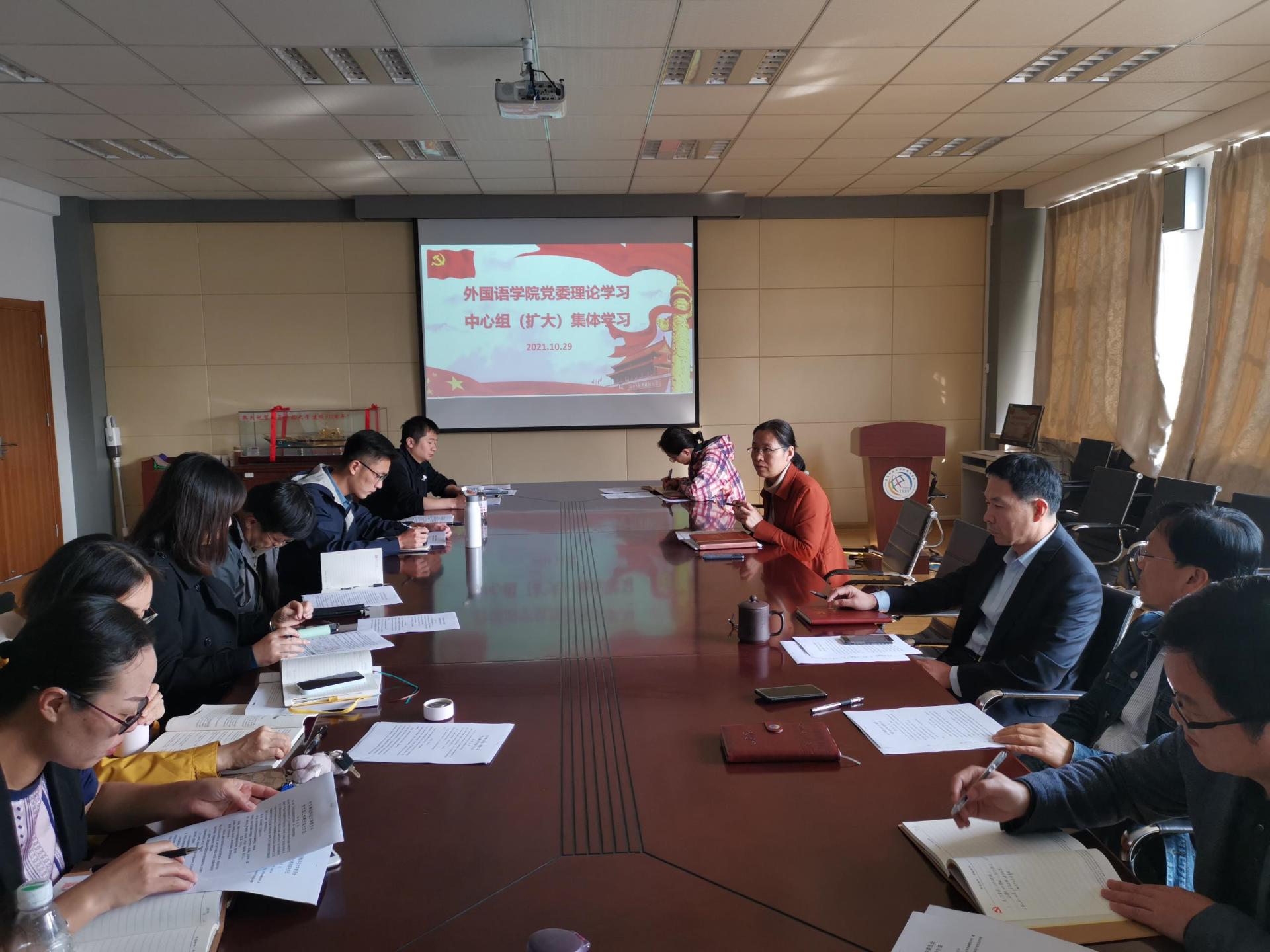 党委理论学习中心组(扩大)在学院517会议室举行集体学习,集体学习由学院党委书记曲斌艳主持,学院党委委员、党支部书记及政治辅导员参加。