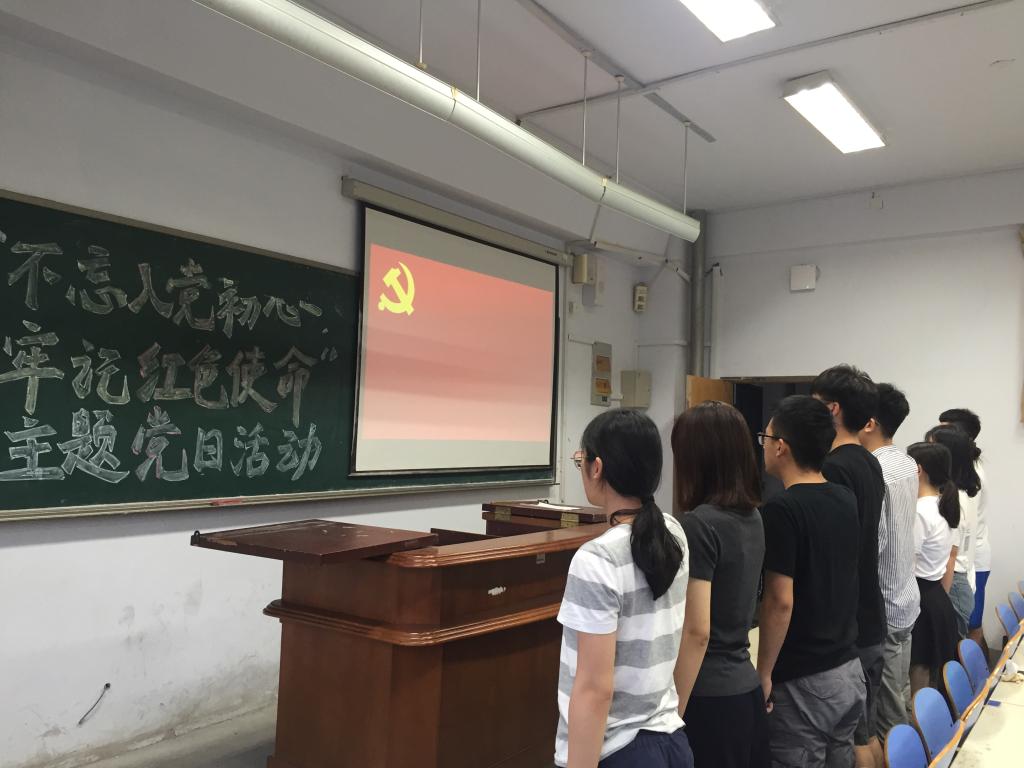 学生党支部书记贾明明带领同学们一起学习了6月29日习近平总书记在主持中共中央政治局第六次集体学习时关于加强党的政治建设的讲话。习近平总书记指出,党的政治建设是党的根本性建设,居于统领地位,是我们党不断发展壮大、从胜利走向胜利的重要保证。随后,师生党员共同观看了历史记录片《信仰》。一件件饱含历史沧桑的图文影像浓缩了中国共产党波澜壮阔的奋斗历程,让所有党员仿佛回到那个风雨如磐的革命年代,深受感染与震撼。最后,全体党员重温入党誓词,共同庆祝了党的97岁生日。