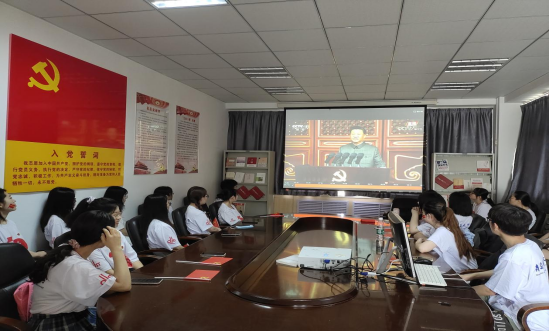 党委组织师生聚集起来,认真收看庆祝中国共产党成立100周年大会盛况,共同庆祝党的百年华诞。