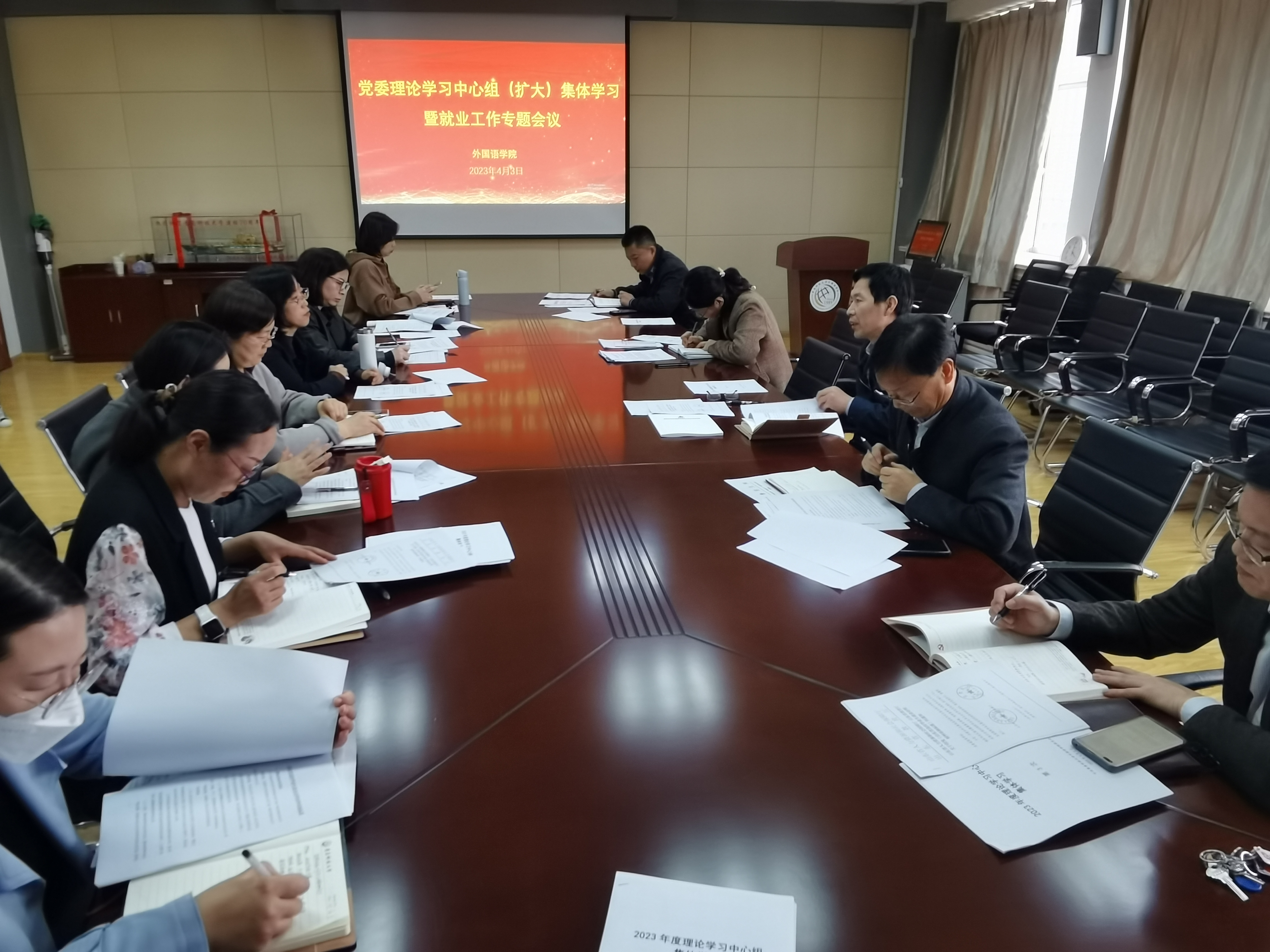 党委理论学习中心组(扩大)在学院517会议室进行集体学习,围绕就业主题进行专题学习与研讨。党委委员、党支部书记、系主任、以及全体辅导员参加了此次会议。会议由学院党委书记曲斌艳主持。