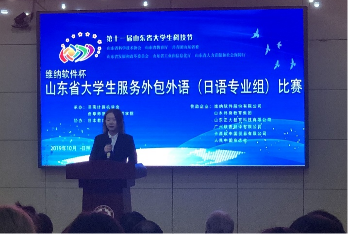 各类赛事和校园活动。日语系继续组织学生积极参加各类赛事,如青岛市山口银行杯日语演讲比赛、“外教社”杯山东省大学生科技外语大赛、山东省大学生服务外包外语(日语专业组)比赛。日语专业的学生在这些市级、省级赛事中都取得了不俗的成绩。通过参赛,学生开拓了视野,能够更好地认识自我和他人,取长补短,互相学习,提高了学生的综合素质。每年都有青岛市日本文化节、校园外语文化节及外文短剧大赛等丰富多彩的文化活动。