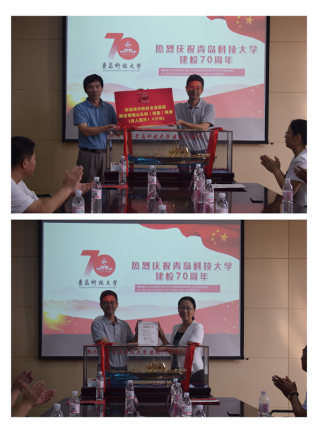 校友会副会长中外运集装箱运输有限公司山东分公司销售部经理、英语89级校友张召成上台发言,表达了对母校的思念以及全体校友对母校的感恩之情。校友们依次上台进行捐赠,院长尹洪山作为学院代表接受捐赠,党委书记曲斌艳向捐赠方发送捐赠证书。