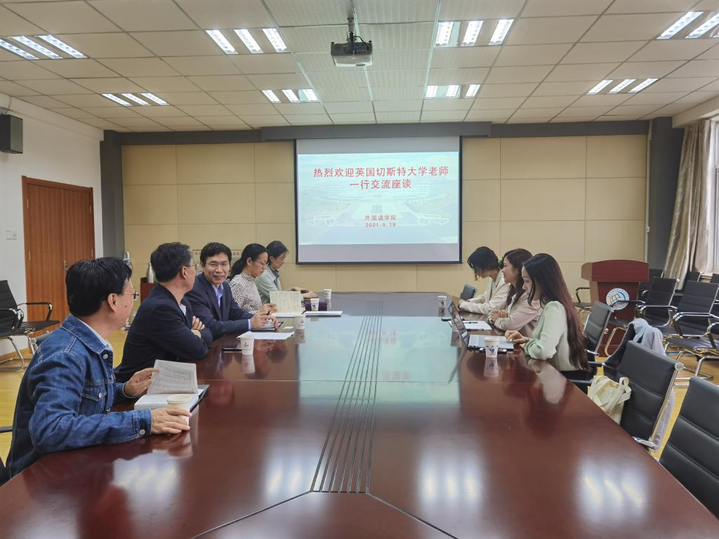 实际情况,共同探讨未来可开展的合作项目与合作模式。最后,英国切斯特大学中国代表也欢迎我院领导教师前往切斯特大学参观访问,并表示希望充分依托中外合作办学,为学生就业、成长成才提供一条便捷有效的途径,期待双方人才培养合作早结硕果。