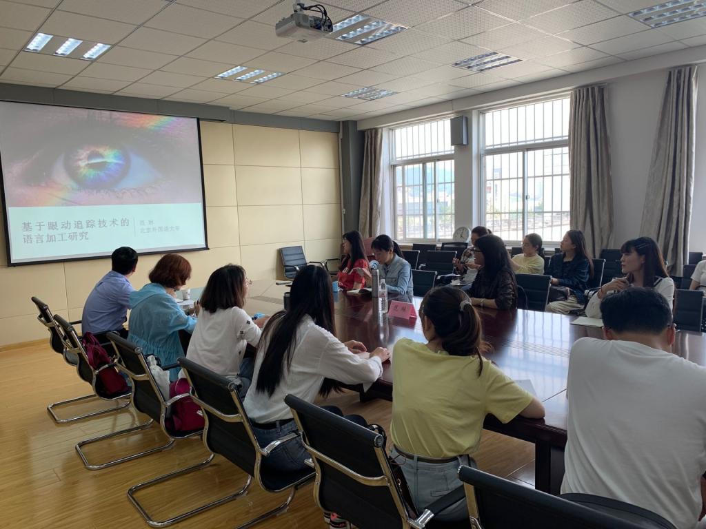 6月7日下午,北京外国语大学博士生导师范琳教授应邀来我院进行学术交流,在外语楼517会议室做了题为《基于眼动技术的语言加工研究》的学术讲座。讲座由七星彩开奖结果查询
