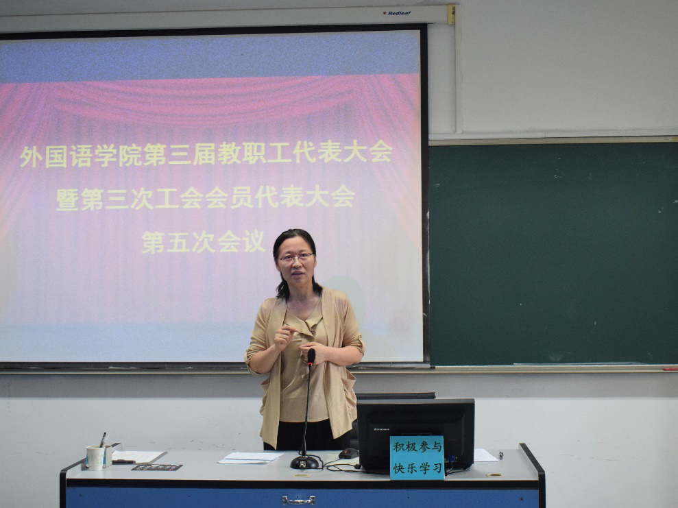 第三届教职工代表大会暨第三次工会会员代表大会第五次会议在学院418语音室召开,会议由学院党委书记曲斌艳主持。