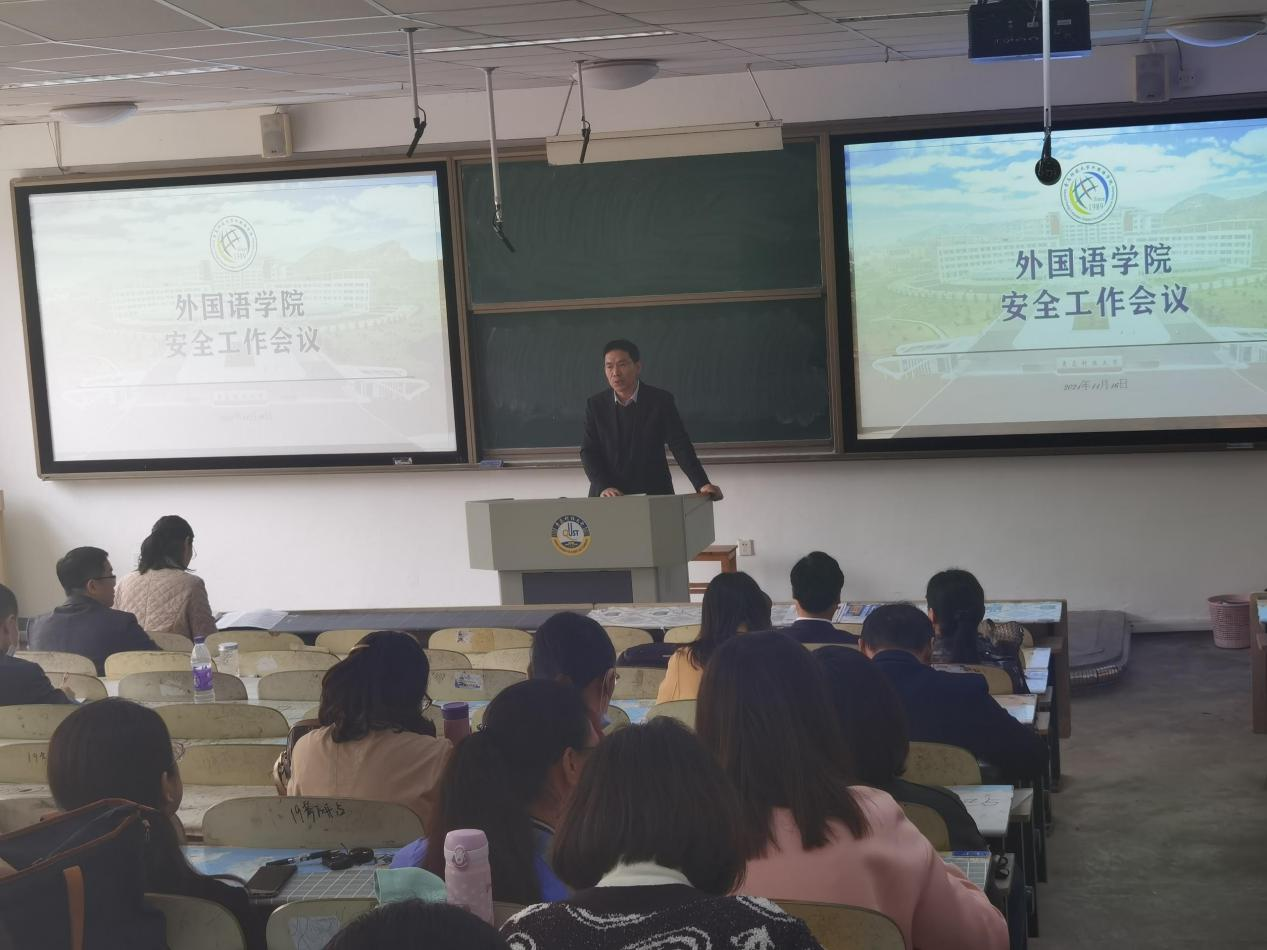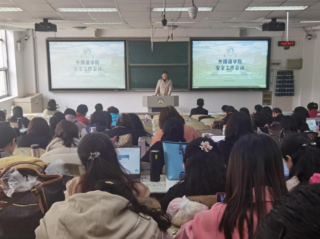 在弘毅楼B区102教室召开安全工作会议,学院全体教职工参加会议。