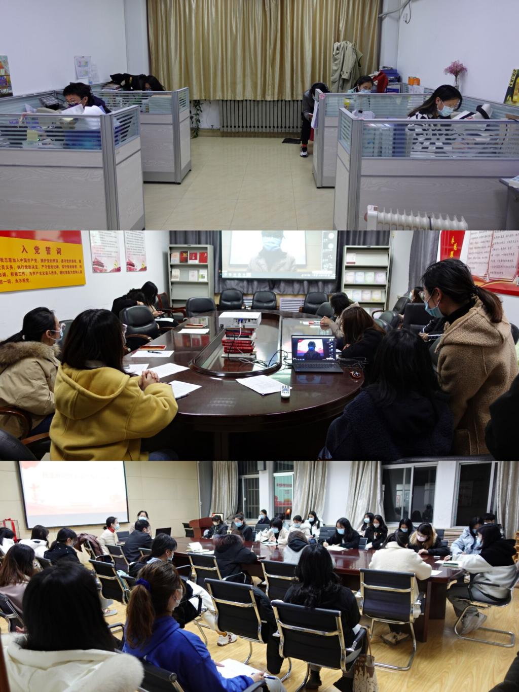 曲斌艳为党员同学分析了加强疫情防控校园全面封闭化管理的必要性,详细介绍了校园全面封闭化管理以来校园运转情况、师生共同的付出和努力,讲述了校园全面封闭化管理以来我校党员的感人故事,进一步要求防疫战时状态下全体学生必须自觉、严格执行学校的防疫措施,作为战疫党员突击队,学生党员更要担当战疫示范员、宣传员、联络员、服务员,用实际行动发挥党员先锋模范作用,成为学生战疫的中间力量。