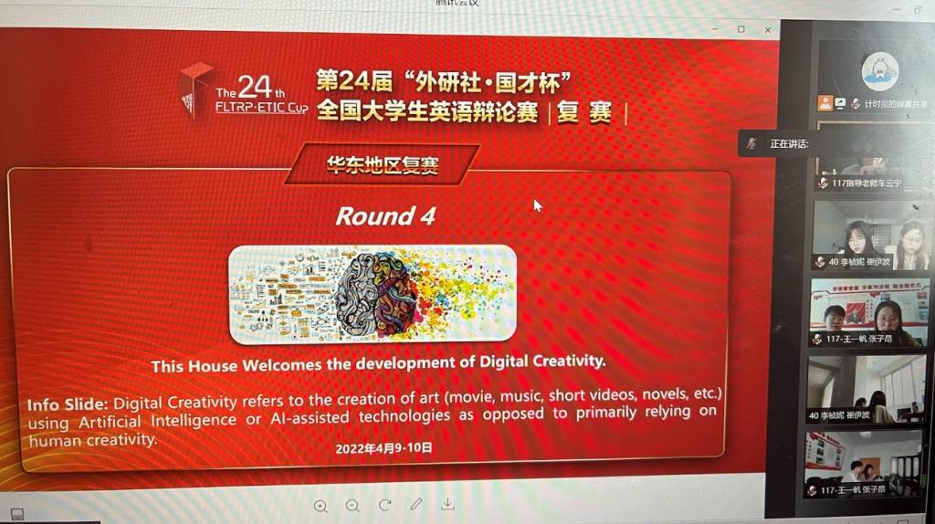 近年来围绕新文科建设要求,积极创新人才能力培养模式,鼓励并支持学生参加专业技能大赛,“以赛促教,以赛促学”,注重提升学生的语言、思维和分析解决问题等多种能力的同时,有意培养学生的家国意识、开拓精神和人文情怀。为了备赛,英语系组建了竞赛指导团队,组织初赛选拔赛,由英语系老师和往届参赛经验丰富的同学进行线上培训和模拟辩论,帮助参赛选手丰富实战经验。为了本次线上比赛能够顺利进行,学院还为两位参赛同学提供了专门的比赛场地。