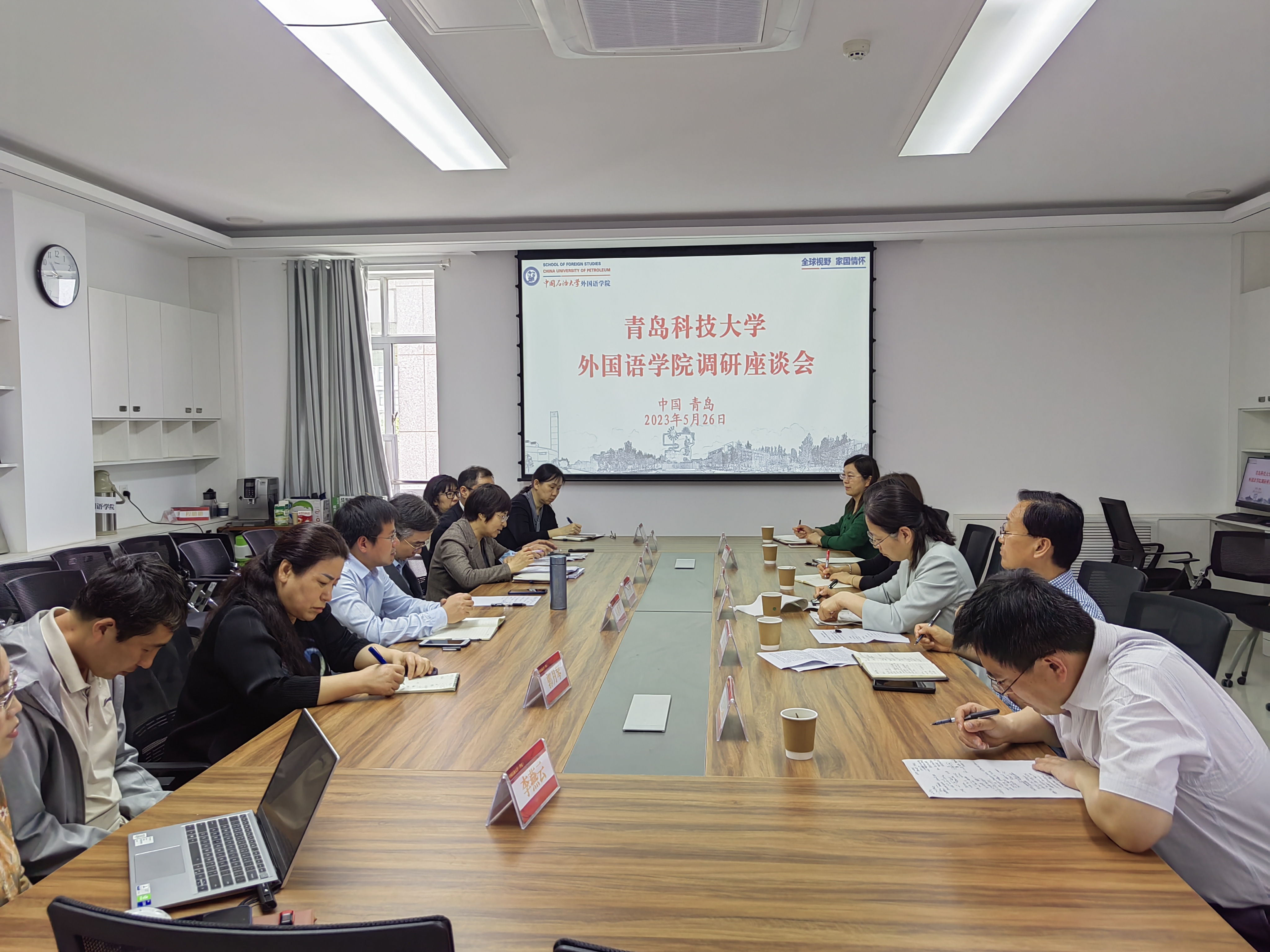交流会上,张建科副院长就中国石油大学外语专业人才培养特色、外语专业建设情况和大学英语教学改革三方面做了详细的经验介绍。双方还就党建工作、学院内部治理、新文科建设、一流专业建设、有组织教学科研、国际合作交流以及人才培养等重要议题进行了全面深入的交流与讨论。双方分享了各自的经验和成果,并积极探讨了如何进一步加强党建工作,优化学院管理体制,提升学科建设水平,以及人才培养模式、创新创业教育和实践教学等方面的内容。这次交流对我院进一步提高党建水平、优化学院治理机制、推动学科建设和人才培养具有重要的指导意义。