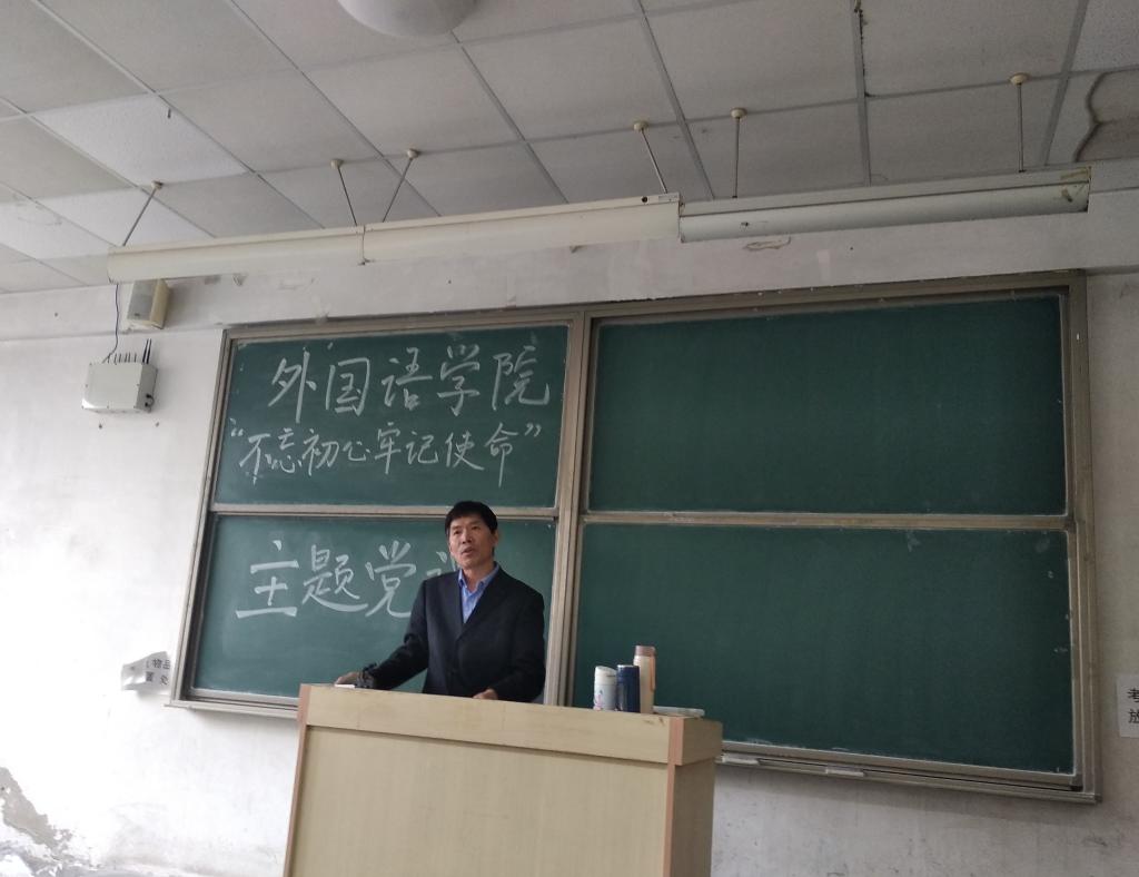 院长尹洪山为全体教职工党员讲授了题为《守初心、担使命、履职责》的主题党课。