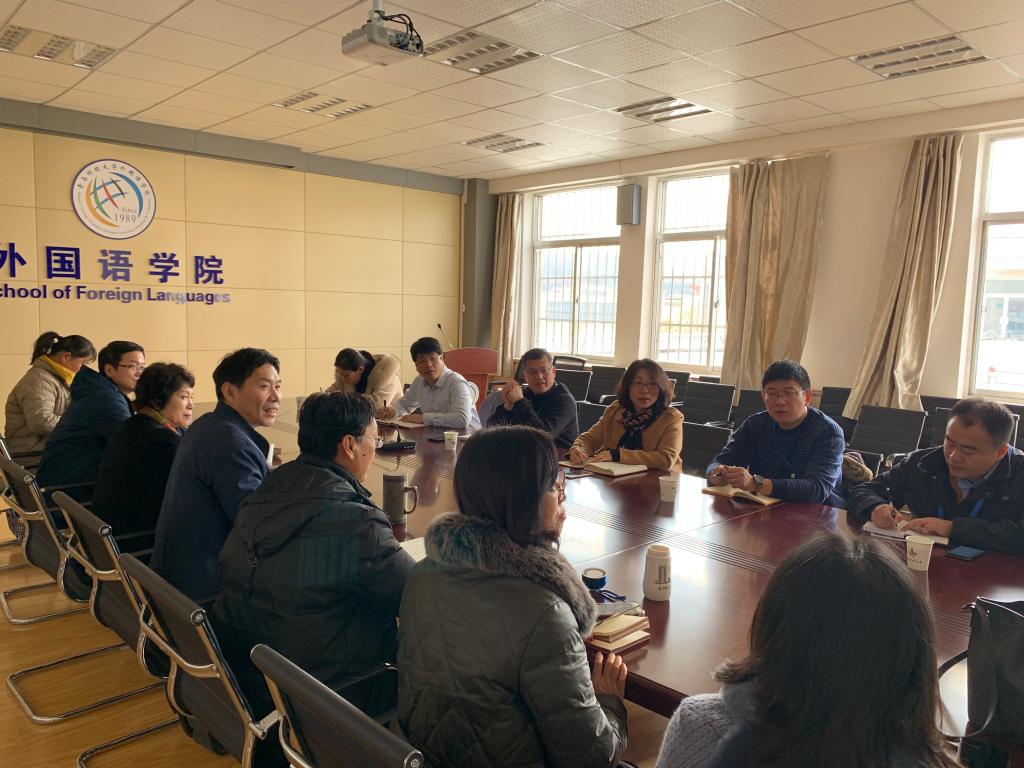 11月25日上午,学校教务处王霞处长带领教务处领导班子成员一行7人来我院调研和座谈。 座谈会由尹洪山院长主持,副院长任素贞、康宁,院长助理刘靖及部分教师代表参加了座谈。