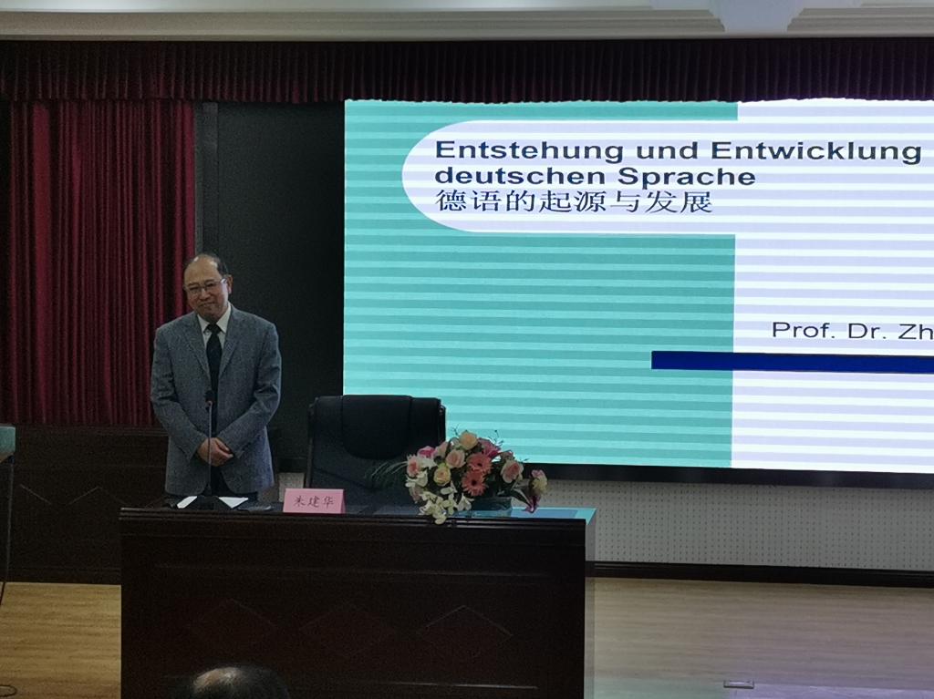 12月11日下午同济大学朱建华教授在外语楼学术报告厅为外院师生做了题为《德语的起源与发展》的学术报告。报告由吕院长主持,德语系全体师生、外院其他语系以及中德学院的部分老师和学生聆听了此次报告。