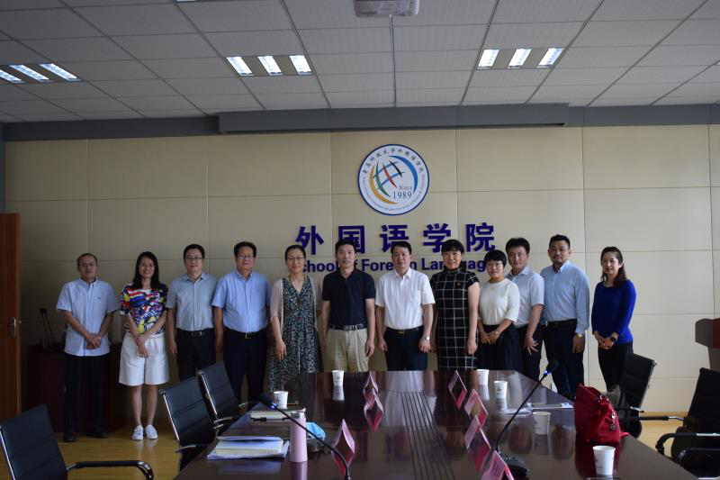 领导一行的来访表示热烈欢迎,简要介绍了学院的基本情况。学院党委书记曲斌艳就理工科院校外语学院如何定位,党建如何与业务工作有机融合等问题与对方交换了意见。副院长吕耀中从学院学科建设、小语种师资力量、办学规模、项目申报等方面做了介绍。院长助理刘靖介绍了我校大学英语教学改革情况,双方就理工科院校大学英语的定位与发展进行了交流。