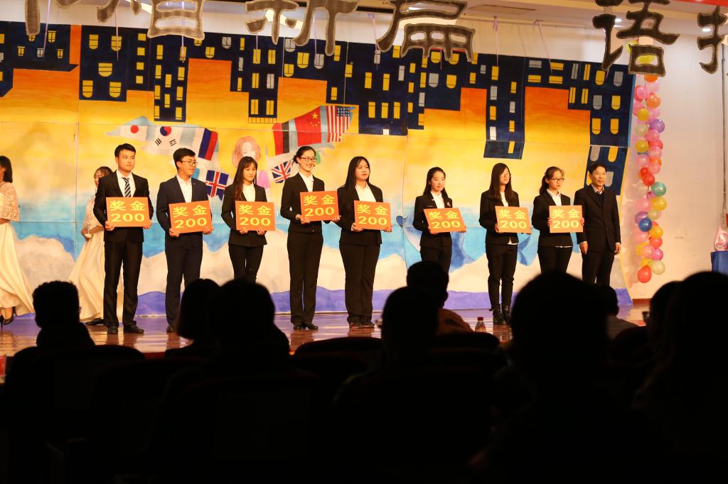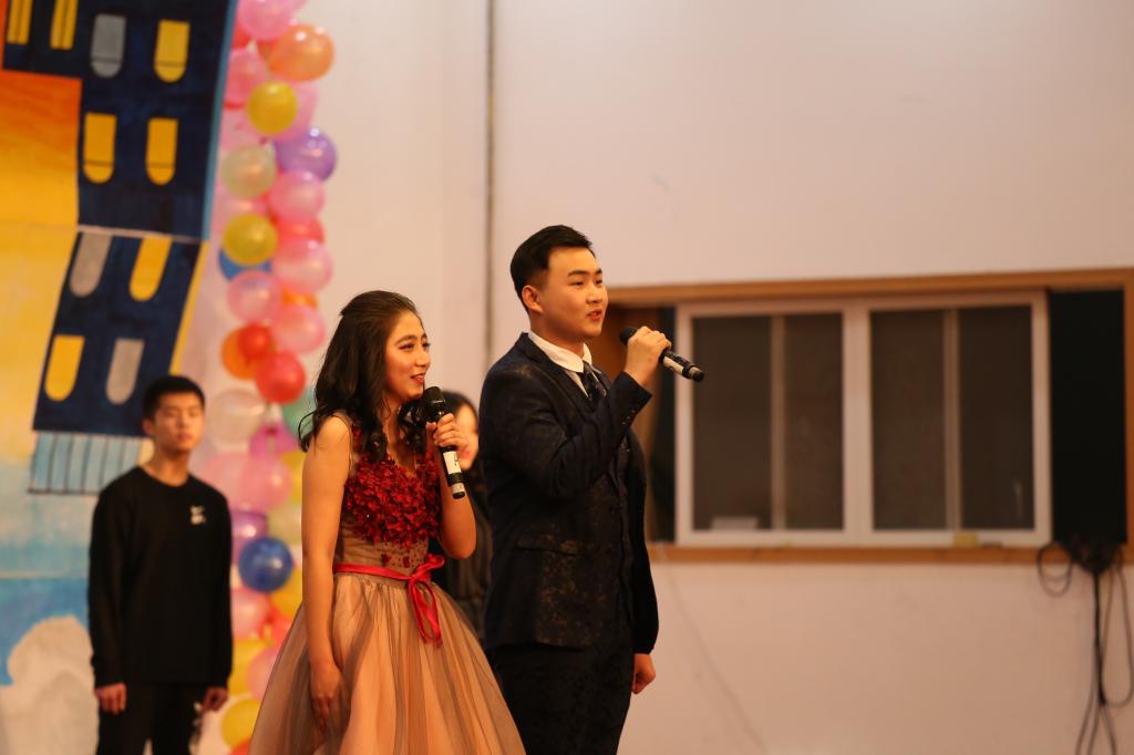 晚会中,尹洪山为2017-18学年先进班集体颁奖;张洪坤为优秀宿舍颁奖。
