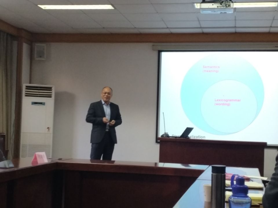 何清顺博士首先介绍了系统功能语言学中语法隐喻的相关概念,并着重分析了概念语法隐喻,包括由名词化实现的经验隐喻和由动词化实现的逻辑隐喻。他对名词化是语篇技术性的主要指征提出质疑,利用COHA,COCA,BNC等语料库以及UAM Corpus Tool等工具对研究假设进行验证,研究表明,英语语篇中动词词组的名词化并没有逐渐增加的趋势,而动词化与相应连词词组的历时分布则呈现显著负相关。概念语法隐喻不但呈现出语类分布差异而且呈现出学科分布差异,语篇技术性取决于动词化而不是名词化。在此基础上,何清顺博士对比了中国英语使用者和英美国家英语使用者在学术语篇中概念语法隐喻的使用情况,发现英美国家英语使用者的学术语篇的技术性明显高于中国英语使用者,而且中国英语使用者自然科学语篇的技术性与英美国家英语使用者的差距远大于人文科学语篇。他指出,该研究对中国大功能背景下的学科英语建设具有重要的启示意义。讲座最后,何博士和在座师生分享了自己学术研究和学术发表的心得与体会。