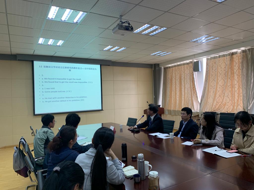 教授、博士生导师俞理明应我院邀请在外语楼517室作了题为《语言迁移新视角》的报告。报告会由尹洪山院长主持,副院长吕耀中、院长助理刘靖及部分教师和研究生参加了报告会。