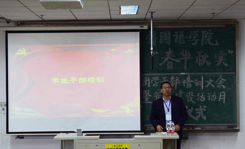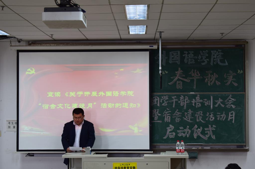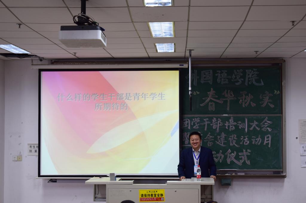 学生处副处长贺炜在学生干部培训过程中,从学风、校风引领,工作方式方法,品行修炼,“五力”增强(活力、动力、合力、能力、魄力)等几个方面与同学们共同探讨了如何做好学生干部。此外,他从宿舍环境、宿舍文化建设以及舍风建设几个方面,深入浅出,阐明了宿舍建设的重要性,希望同学们通过努力,营造优美的宿舍环境,传承外院优良舍风,共同营造好自己的宿舍、自己的家。