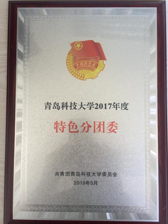 日前,校团委举行了青岛科技大学五四红旗分团委、特色分团委评审答辩会,我院分团委认真组织实施,荣获“青岛科技大学2017年度特色分团委”荣誉称号。