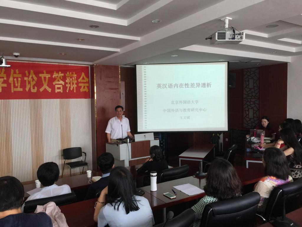 王文斌教授结合自己多年的研究成果,同与会师生共同探讨了时态在汉语和英语中有差别的内在深层次原因,提出时空性在汉语和英语中的差异—汉语重空间性而英语重时间性。他分析了汉语和英语的特性,认为正是语言的特性才让一种语言能够区别于其他语言,此类特性即是语言的本质。他表示汉语不仅需要好好学,更需要学者们的深度研究。会后,王文斌教授与师生进行了互动问答。