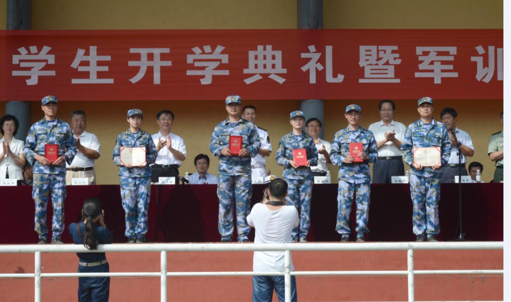 获得军训先进营称号,阅兵方队获得军训先进连称号,辅导员贾明明获得优秀指导员称号。