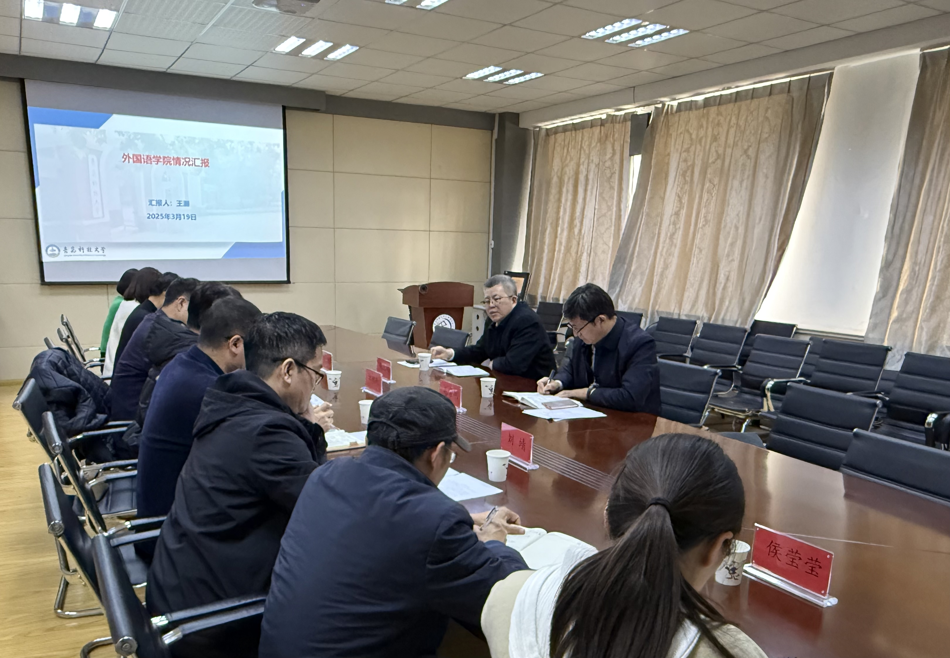 要立足“十五五”规划战略机遇期,系统谋划人工智能技术革命背景下的外语教育教学转型路径,重点围绕大学外语与专业外语融合发展,从课程体系重构、教学模式创新、办学定位升级三个维度展开深度改革。二是以改革创新破解共性发展难题。学院班子成员要解放思想,越是有困难、越是要改革、越是要创新,要凝聚改革共识,鼓励师生大胆探索、勇于创新,聚焦“外语+专业”特色培育,在补短板、强优势中走出高质量发展新路径;三是强化党建引领凝聚发展合力。学院要发挥基层党组织战斗堡垒作用,以有组织科研、有规划的人才培养提升师资水平,通过打造特色品牌增强学院凝聚力,引领师生同心共赴发展愿景。杨天梅强调,学院领导班子要以“小学院大作为”的魄力,在人工智能浪潮中主动求变,以特色化、差异化发展实现外语学科内涵式跃升。