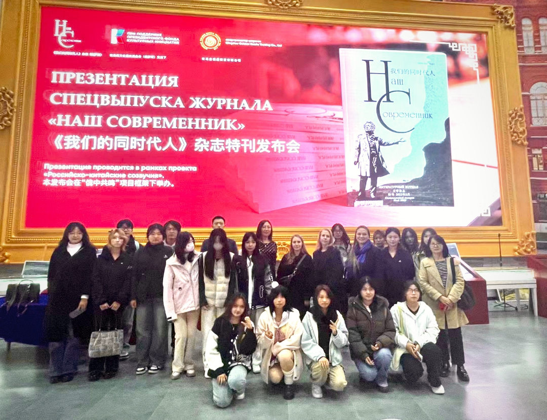 2025年10月21日,我院俄语系蒋春丽老师和20名本科和研究生学生受邀参加在青岛上合之珠国际博览中心举办的俄罗斯诗歌杂志《我们的同时代人》首期中俄双语特刊发布会,与现场中外诗人一起共同体验感受俄语诗歌的独特美感。