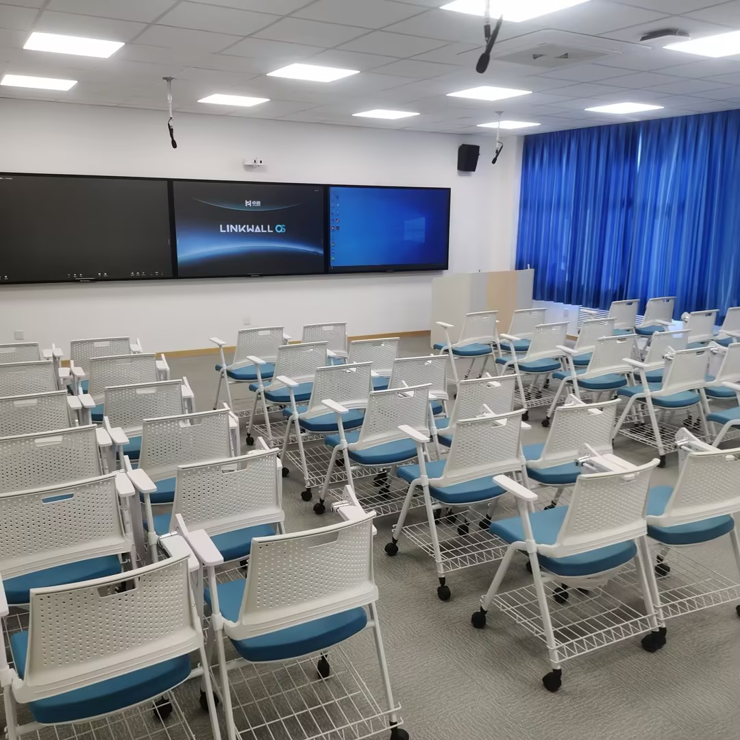 该项目于2025年7月完成全部招标流程并同时开始施工,8月底圆满完成建设工作,新学期伊始便顺利进入试运行阶段。在为期一个多月的试运行期间,智慧教室承担了授课、讲座、会议等任务,接受了全面的测试。语言视听中心组织了多轮专题培训,确保学院教师们能够熟练运用新设备。2025年10月17日,由网信办、学院组成的验收小组对项目进行了现场评审,一致认为该项目功能完备、运行稳定,达到了预期建设目标,同意项目通过竣工验收。2025年10月23-28日,学院、审计处及外部单位对项目进行现场审计,施工质量合格,符合预期环境建设标准要求,412、413智慧教室可正式投入使用。