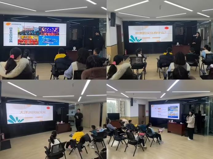 活动中,“知行青年服务团”的志愿者们充分发挥外语学科优势与青年创新活力,针对社区青少年群体的特点和需求,精心设计并实施了多主题、互动性强的教育服务项目。在项城路社区,志愿者们以“趣味英语角”为载体,通过破冰游戏、单词接龙、情景对话等生动活泼的形式,营造出轻松愉悦的英语学习氛围,有效激发了社区孩子们的语言学习兴趣。在惠都社区,志愿者们开展以“文化启迪,知行合一”为主题的系列小课堂。志愿者们充分发挥外语与跨文化知识储备,围绕外国建筑艺术、中国建筑风格、世界民俗文化、中外传统节日等主题,通过图片展示、视频导览、故事讲解、问答互动等形式,为社区孩子带来生动有趣的文化启蒙。活动中还融入手工制作环节,如建筑模型拼搭、传统剪纸、节日手工等,让孩子们在动手体验中深化对文化的理解,增强了活动的趣味性与实践性。系列课堂不仅拓宽了孩子们的视野,也营造了浓厚的社区文化学习氛围。