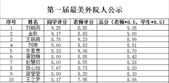 根据《七星彩开奖结果查询 “最美外院人”评选通知》要求,本着公开、公平、公正的原则,经过个人申请、资格审查、现场答辩等环节,最终确定七星彩开奖结果查询 第一届“最美外院人”名单,现公示如下,接受广大同学监督。如有异议,请在公示期间反映。