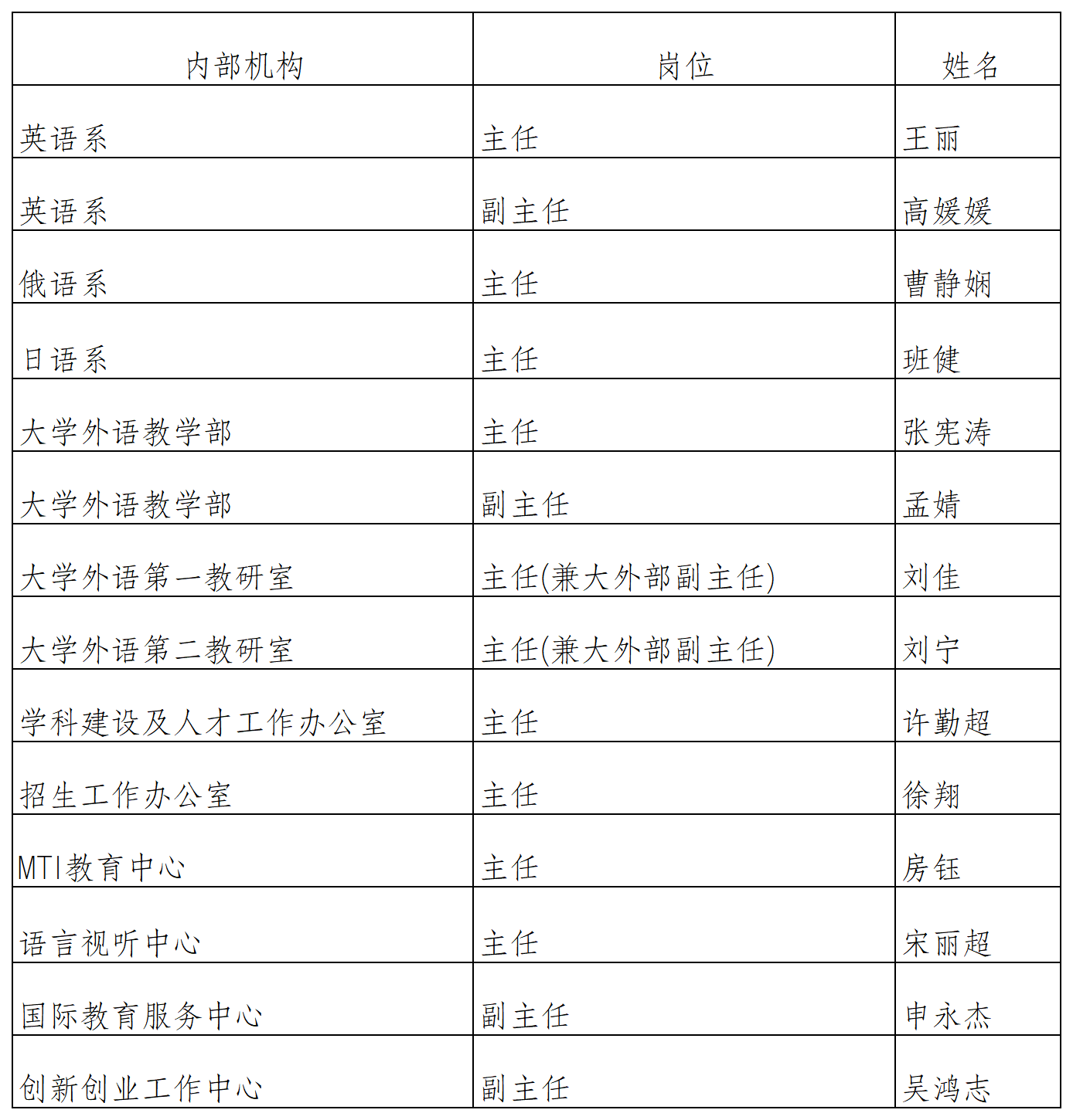 在个人报名、民主推荐、会议推荐等选拔程序基础上,经学院党组织会议研究决定王丽(英语专业)等14名同志作为学院内部机构负责人拟任人选,现在学院范围内进行公示。