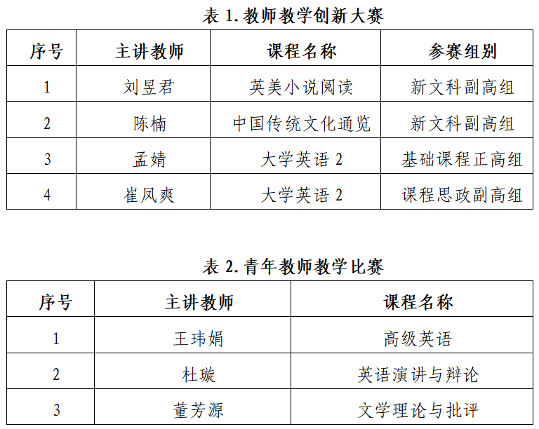 2025年教创赛、青教赛拟推荐校赛人员名单(按照主讲老师姓氏笔画)公示如下: