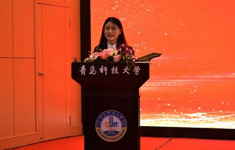 第五届学生会执行主席王玉婕,青岛科技大学学生会代表张皓越,青岛科技大学信息科学技术学院学生会主席刘国豪以及各兄弟学院学生会主席。