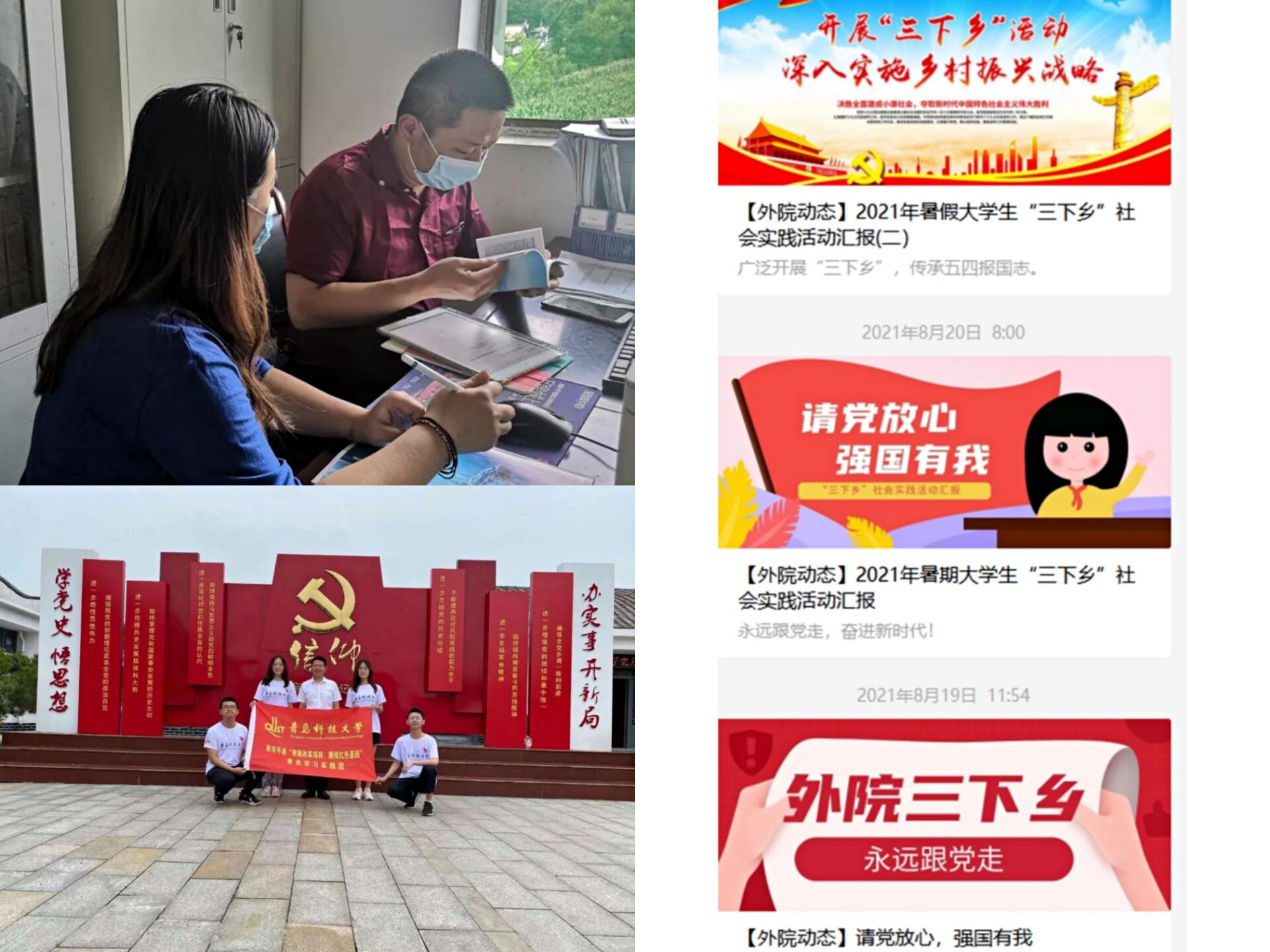 启动了以“请党放心,强国有我”为主题的2021年暑期大学生“三下乡”社会实践活动。 各班级积极响应,陆续出发,组成了“致敬改革闯将,赓续红色基因”党史学习教育实践团、青岛科技大学疫情下的中国国情体察小分队等,开启了属于他们的暑期实践之旅。2021年寒假,七星彩开奖结果查询