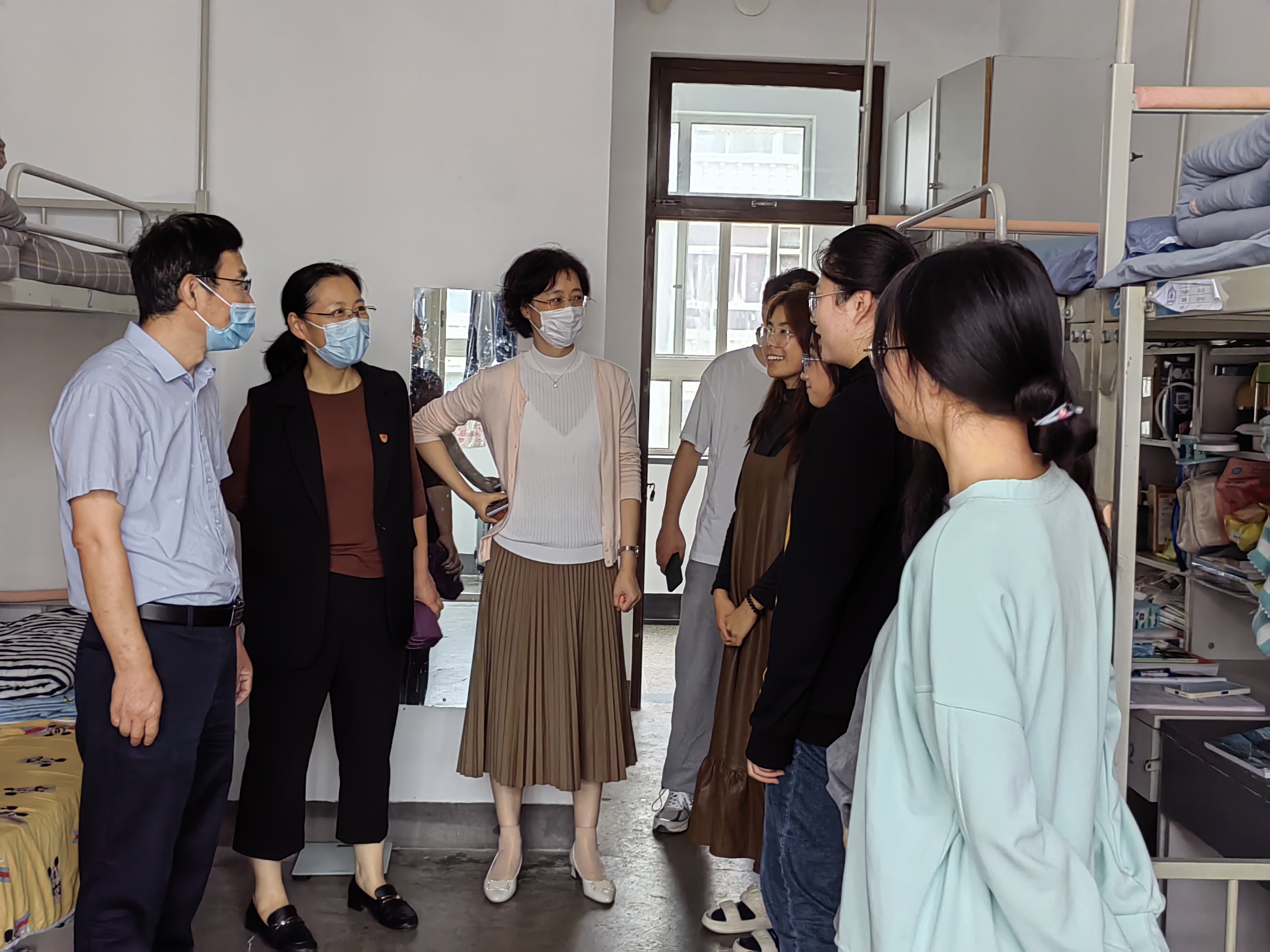 我院领导老师们集体来到学生宿舍,为学生们送上节日的关怀。领导老师们在这个特殊的节日里,对新生入学一个月以来的生活学习情况等表示关切,并叮嘱同学们做好自我防护工作,同心协力共抗疫情。同学们也对院领导的慰问表达了衷心的感谢。