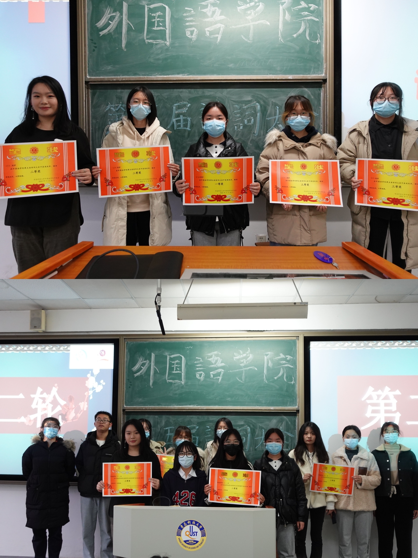 本次活动过程中,各班同学踊跃报名,每班均派了出三位同学参加诗词比赛,角逐冠军。比赛过程中各位选手引经据典,共同为大家展现了诗词的魅力。最终,获奖名单如下: