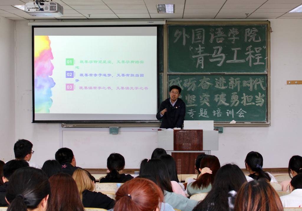于超从“既要学仰望星空,又要学脚踏实地”、“既要有赤子追梦,又要有担当圆梦”、“既要读有字之书,又要读无字之书”三个层面同与会同学分享了在纪念五四运动100周年大会上习近平总书记的重要讲话精神和亲身参会的感受。他表示追梦的步伐不等人,容不得半点“佛系”和“小确幸”;发展的机遇不等人,“左顾右盼”只会把机遇拱手让给别人;奋斗的时代不等人,“坐吃山空”就会输掉未来,希望同学们能够按照总书记的要求,树立远大理想、热爱伟大祖国、担当时代大任、勇于砥砺奋斗、练就过硬本领、锤炼品德修为,为中华民族的伟大复兴的贡献自己的力量。