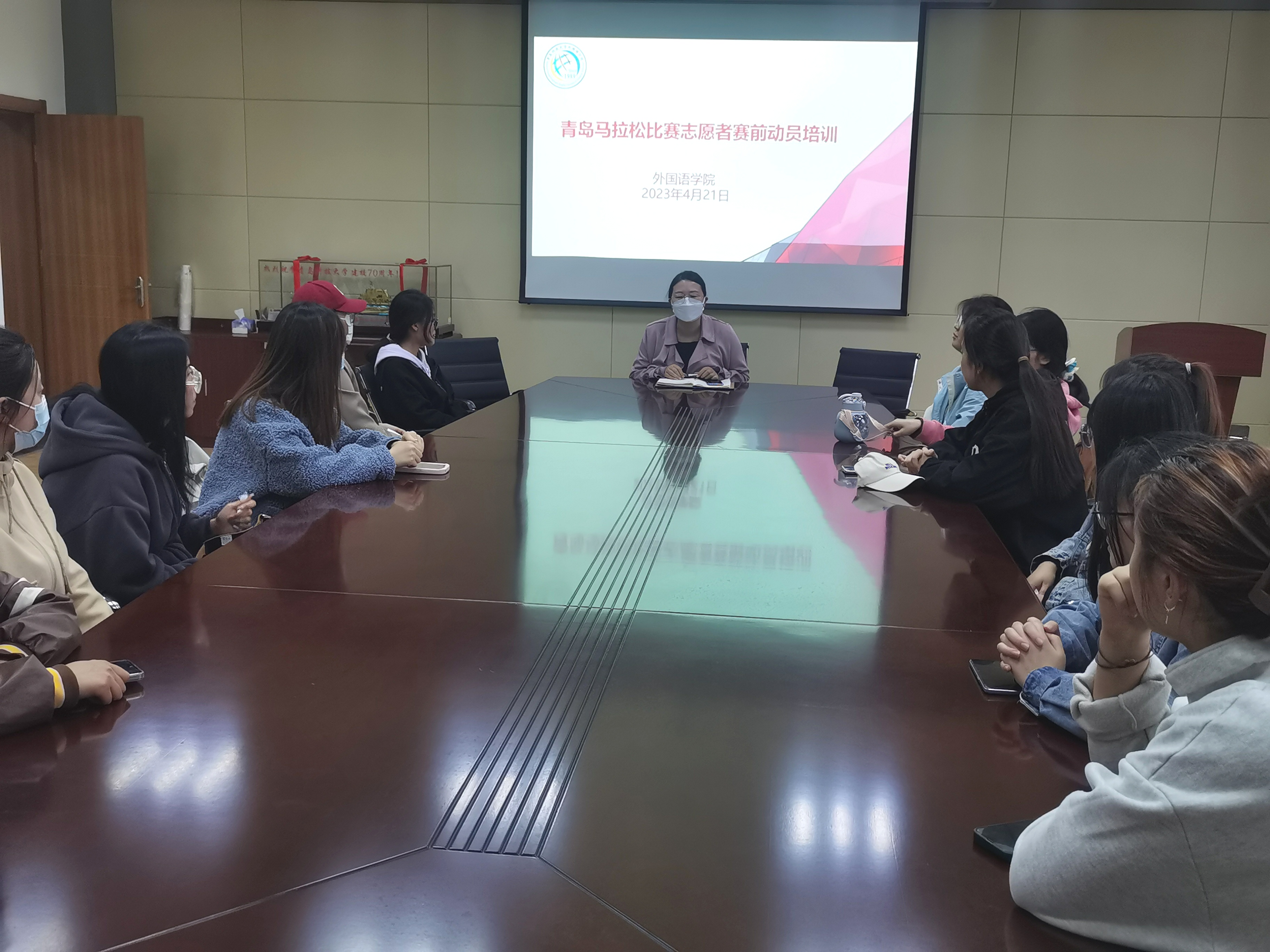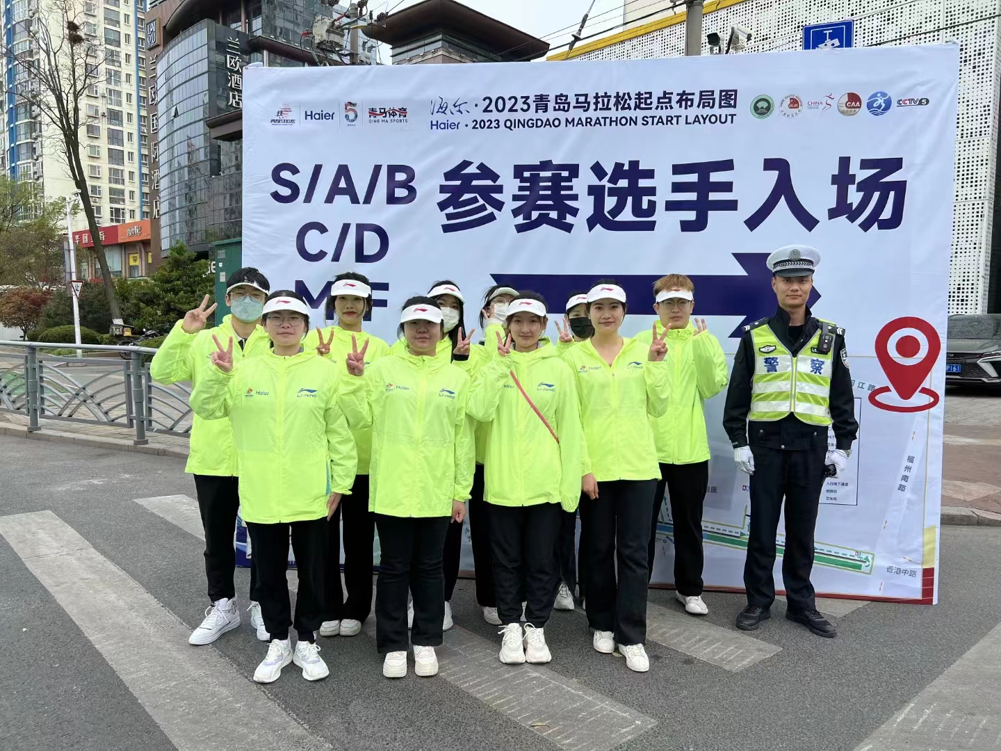 的志愿者也在自己的岗位上发光发热。早在出发前,学院进行了出征动员会,团委书记刘妍君老师叮嘱志愿者们注意保暖,注意人身财产安全等。带着学院的人文关怀,赛场上的外院志愿者用自己的热情诠释着“奉献、友爱、互助、进步”的志愿者精神,在一丝不苟的工作中体现出责任意识与奉献精神。他们用实际行动向来自全世界的跑者展现出青科志愿者的风采与素质,让“志愿者,找青科”的口号更加响亮。