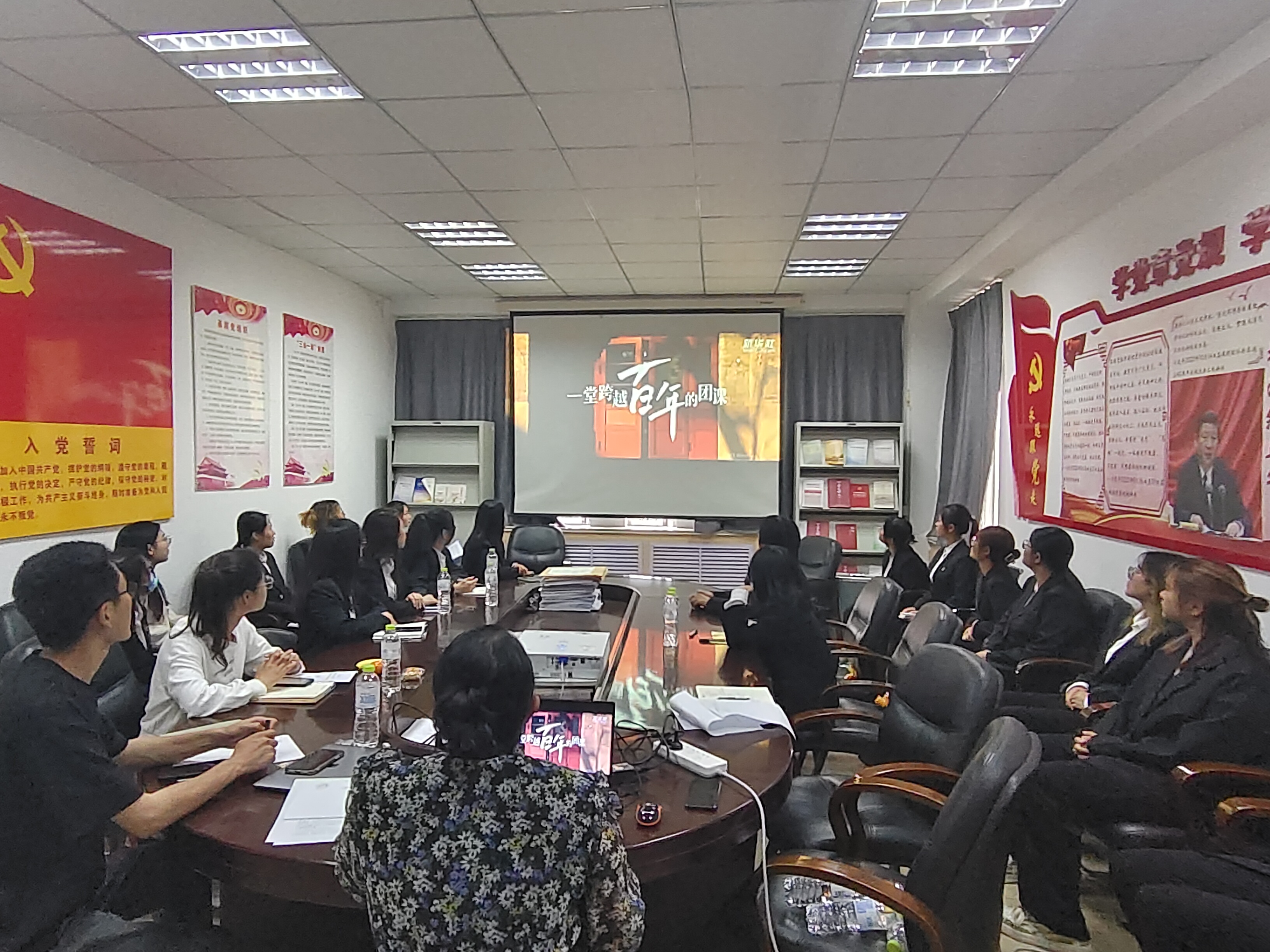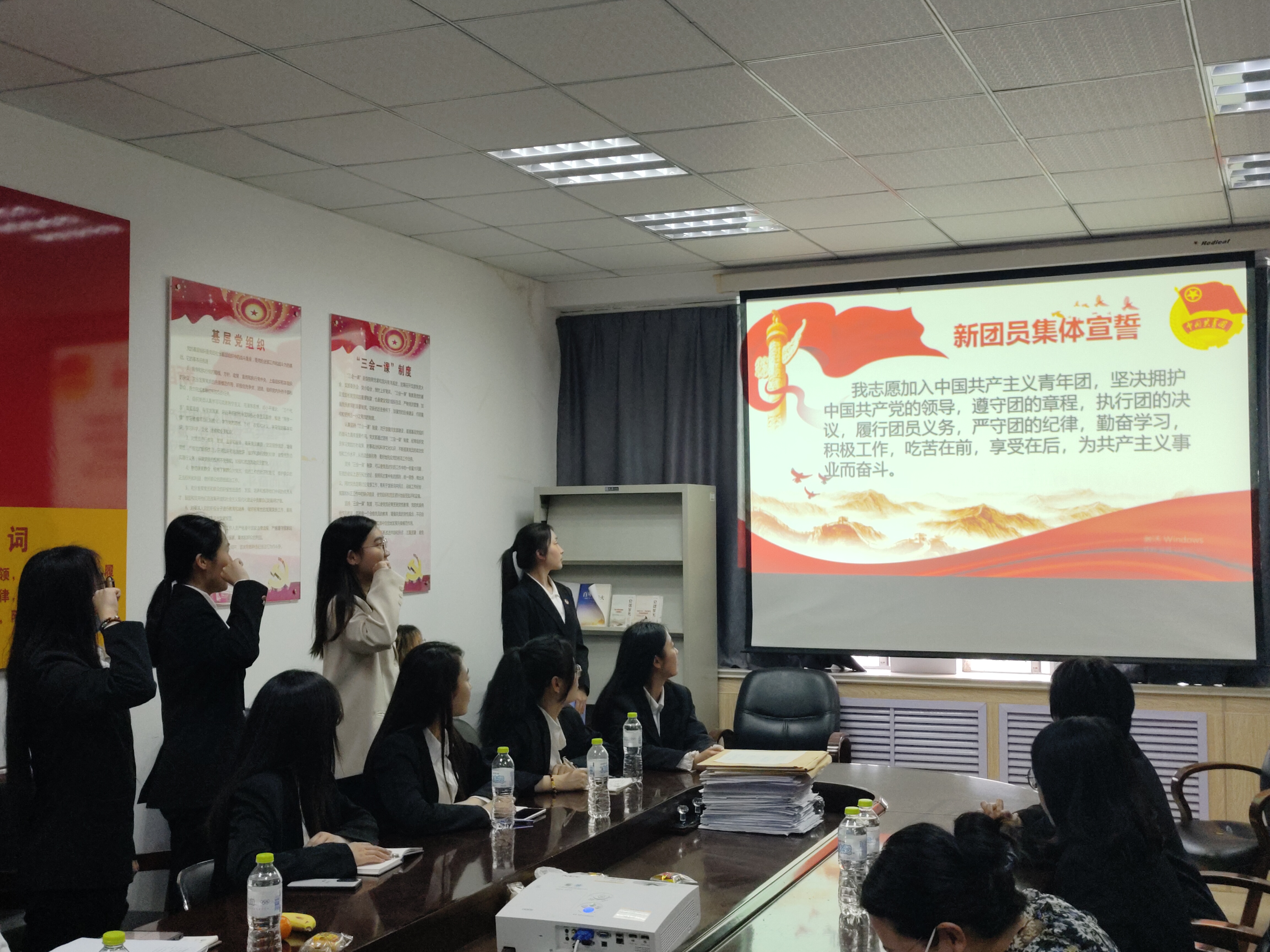 团委在学院楼502会议室举行“团徽耀青春,奋楫再出发”主题团课暨2023年新发展团员入团仪式。出席本次活动的有学院全体团委老师,两位新团员以及2022级全体班长、团支书。