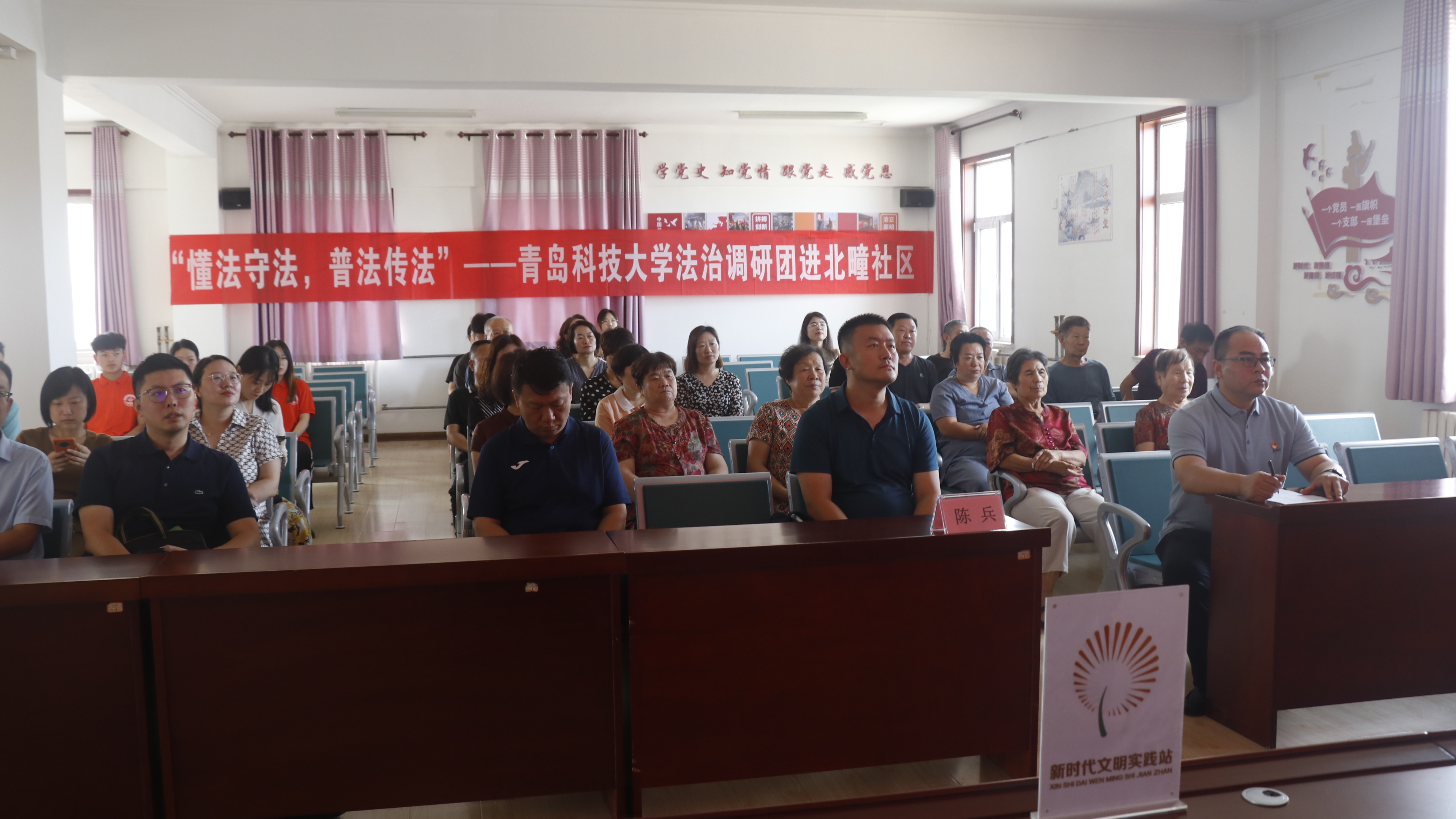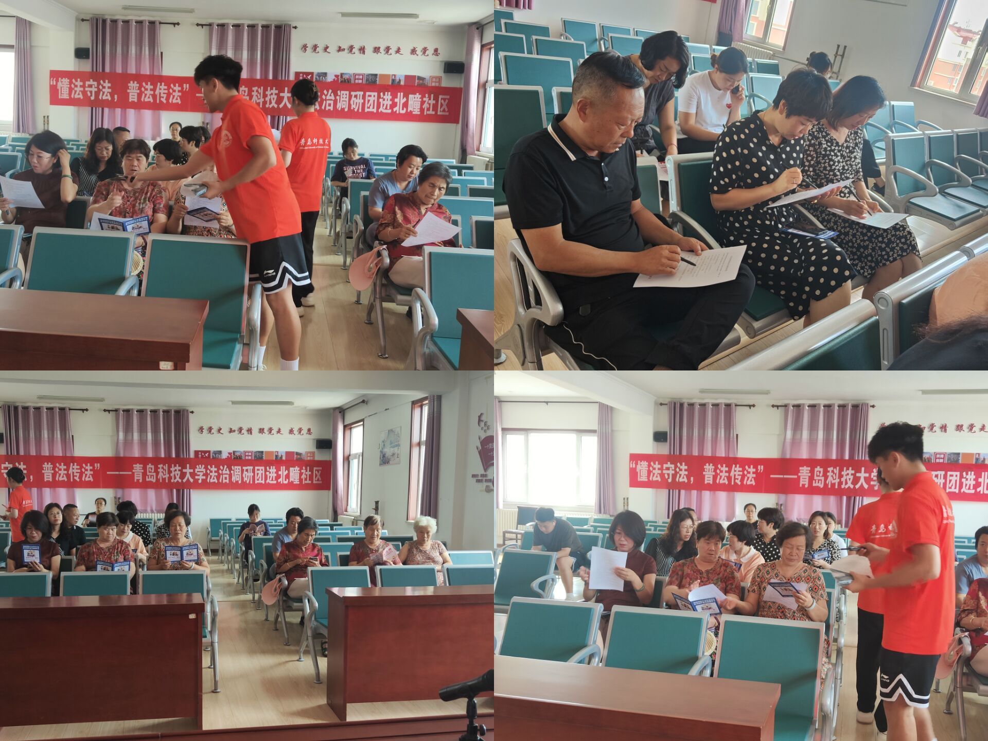 为加强法治宣传教育,增强居民法治意识,7月17日,“懂法守法,普法传法”青岛科技大学法治入社区调研团队走进青岛市城阳街道北疃社区,为居民朋友们进行普法社会调研及法治理论普及宣讲。