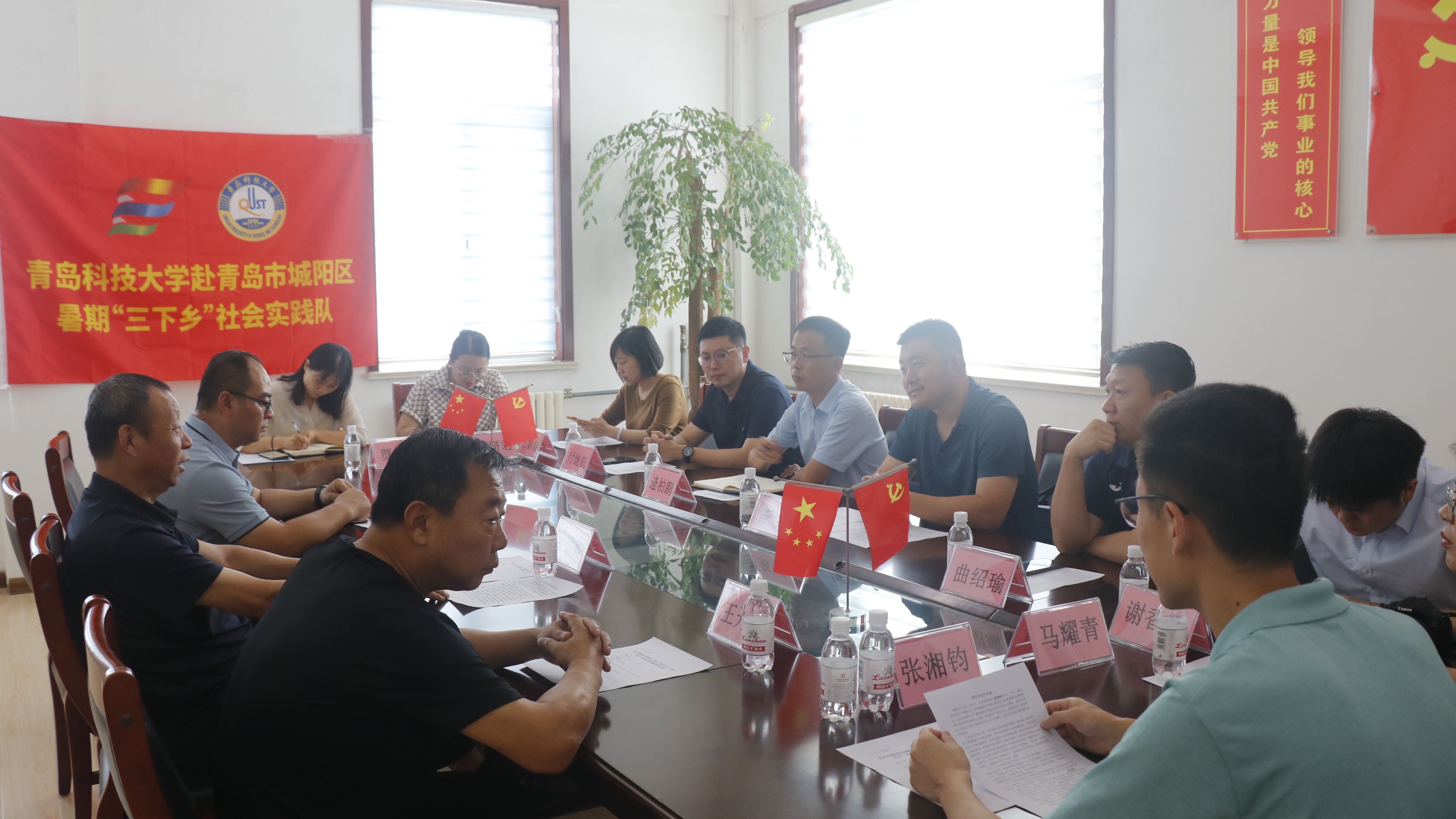调研初始,青岛科技大学团委副书记陈兵老师同其他六个学院的团委书记来到了社区,社区党支部书记、社区主任王崇雷,支部委员王钢庆、王开林热情迎接,随后在会议室进行了座谈。