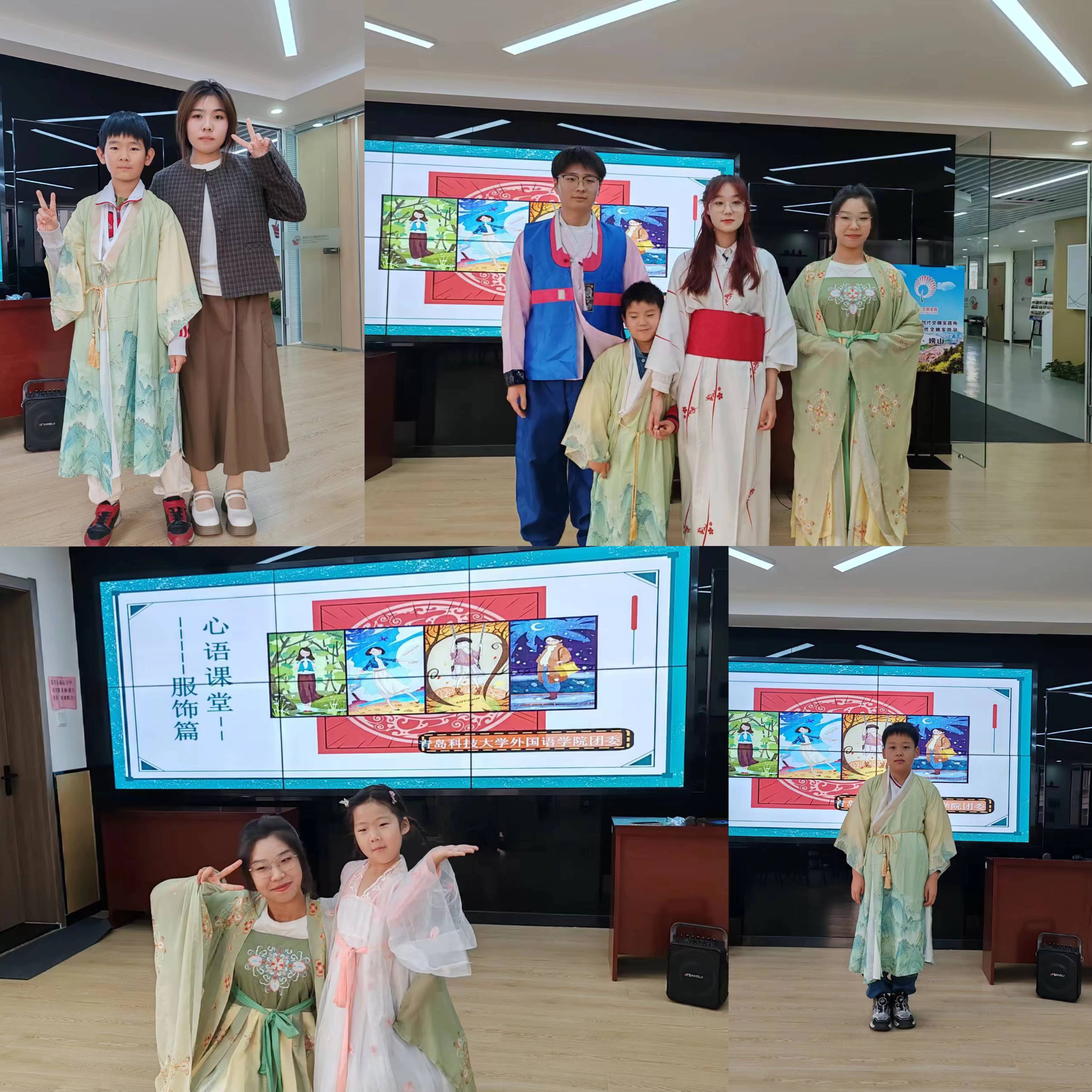 此次“心语课堂”为了更好的弘扬传统文化,志愿者们为社区小朋友准备了汉服,小课堂结束后,小朋友们穿上汉服,亲身体验了中国传统服饰的魅力。