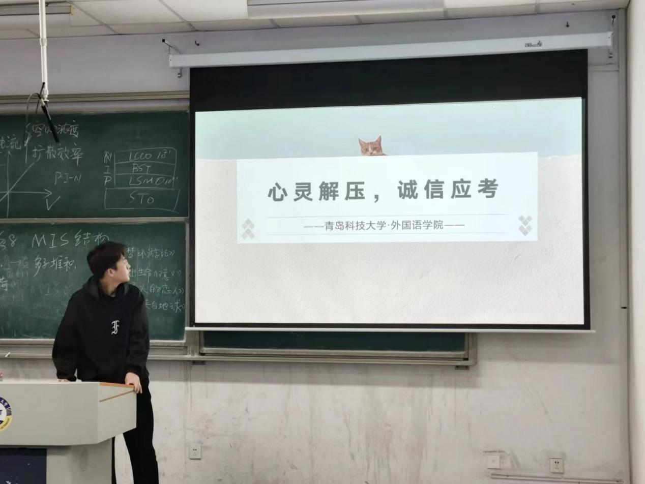 英语234班在弘毅楼开展“心灵解压,诚信应考”主题班会。此次班会旨在缓解学生的考试压力,加强学生的诚信意识,营造良好的考试氛围。