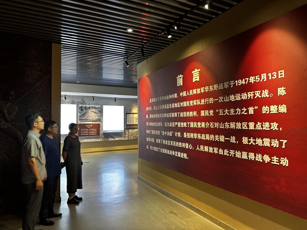 活动首站,学工团队来到孟良崮战役纪念馆,怀着崇敬的心情参观了陈列的历史图片和文物,聆听了革命先烈们浴血奋战、视死如归的英雄事迹,详细了解了孟良崮战役的战略背景、激烈战斗过程和伟大意义。马寒老师在现场指出:“缅怀革命先烈,不仅是对历史的尊重,更是对我们当今使命的提醒。我们要把先烈的精神力量转化为推动教育事业发展的动力,坚定理想信念,时刻牢记育人的根本任务。”