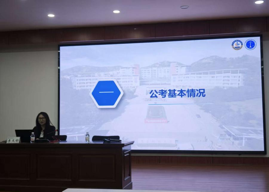 会议第二阶段,两位考公上岸的优秀学子带来了干货满满的经验分享。李天舒围绕公考基本情况、岗位选择、具体备考方法、心态调整等方面展开全面讲解,鼓励大家“什么时候开始都不算晚”,坚定目标、稳步推进即可收获成果。朱浩楠聚焦备考核心要点,提醒同学们避免方法焦虑,选岗时综合计算成本,在有限时间内合理分配精力。他强调备考越早开始越好,同时要平衡好毕业论文与复习节奏,并给出具体可落地的学习建议,充实的内容让在场同学受益匪浅。