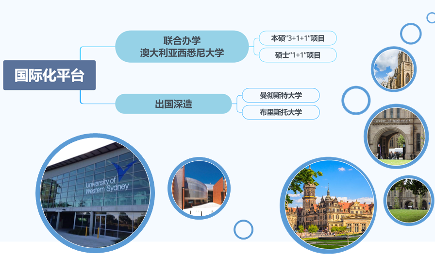 本专业设有与澳大利亚西悉尼大学联合培养学士和硕士的项目,为学生提供出国学习生活的机会。英语专业毕业生就业部门包括政府外事翻译、跨国公司、外资企业、大型国企、英语教育行业等。