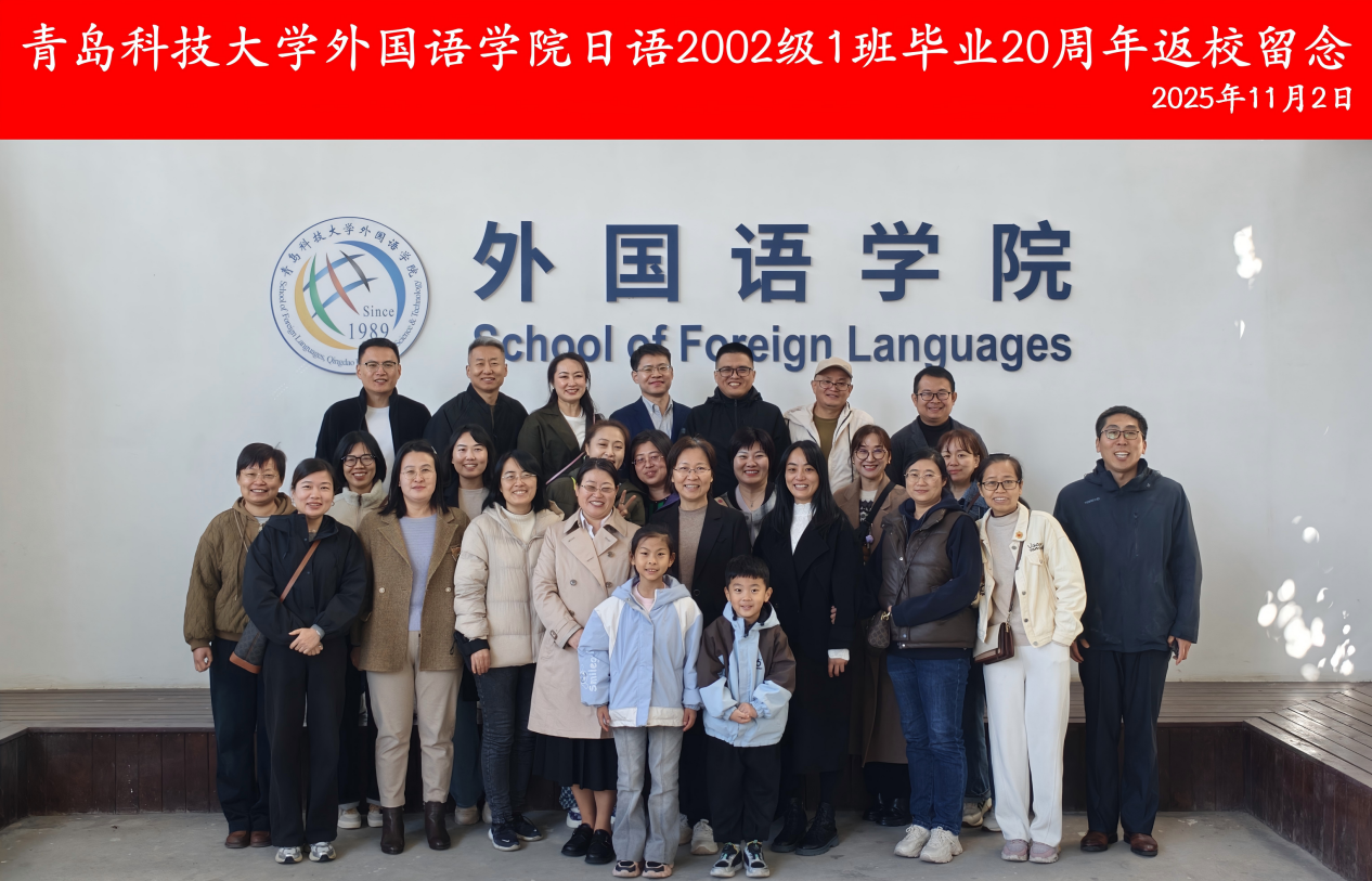 日语2002级1班毕业20周年纪念大会在学院413会议室隆重举行。学院党委书记曲斌艳、日语系主任班健、团委书记王玉凯、教师代表与日语021班校友欢聚一堂,共叙师生情谊,共话未来发展。